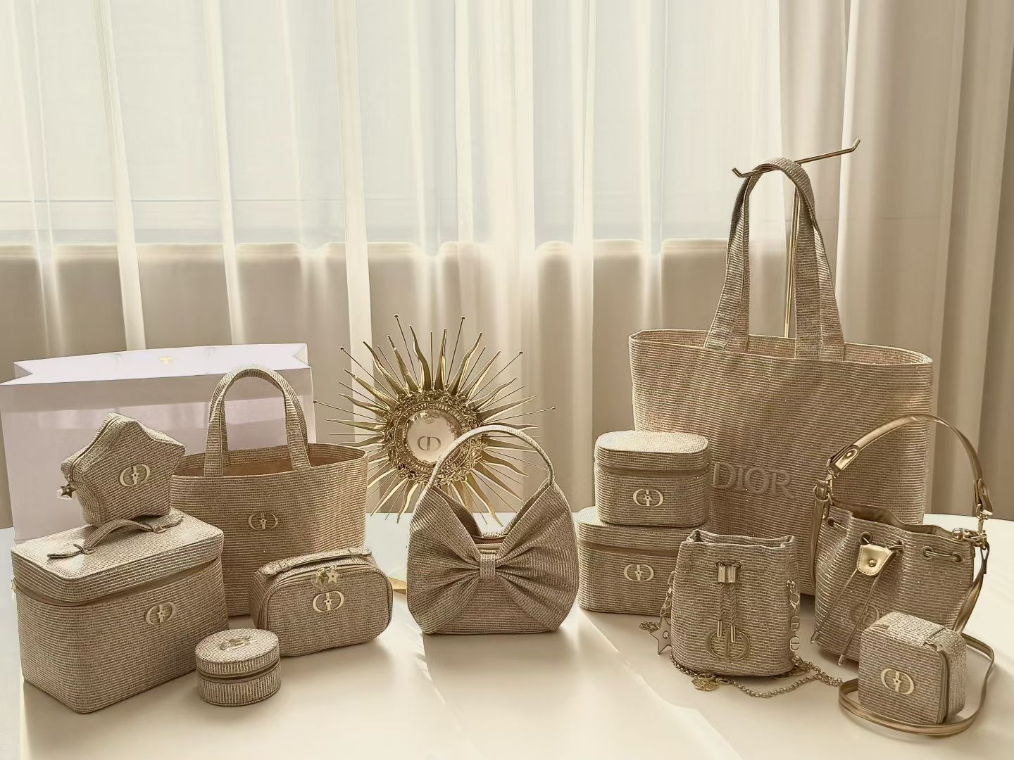 New Dior summer gift woven shopping bag, classic beige color, French lazy style